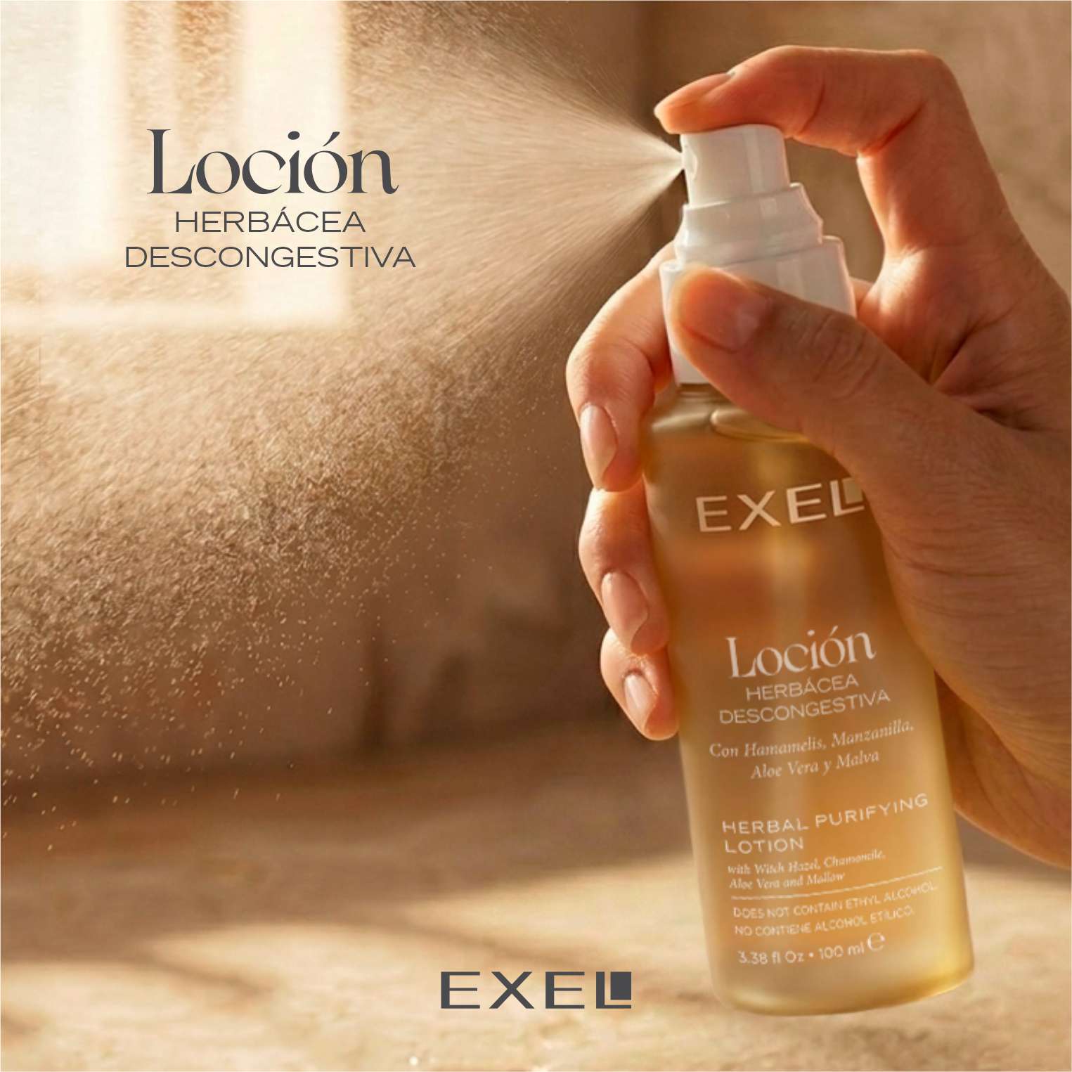 - Brumizar sobre la piel limpia, manteniendo los ojos cerrados y el envase a una distancia de unos 20 cm del rostro.