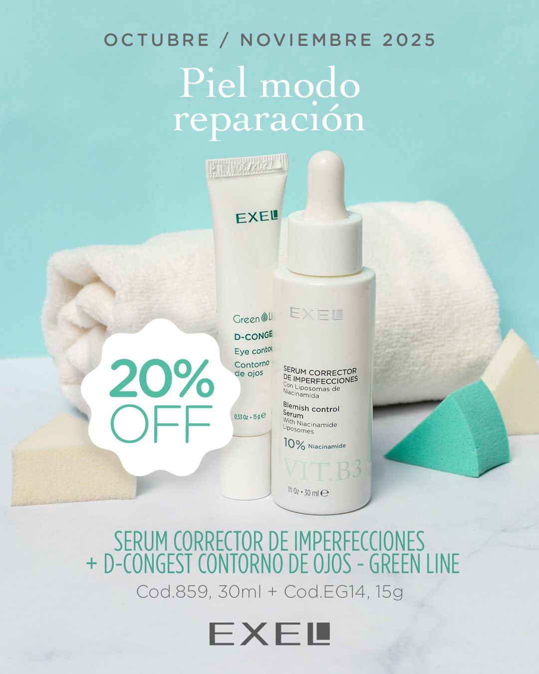 Llevando un Serum Corrector de Imperfecciones y un D’Congest Contorno de Ojos de la linea Green Line Confort, te hacemos un 20%OFF 馃巵