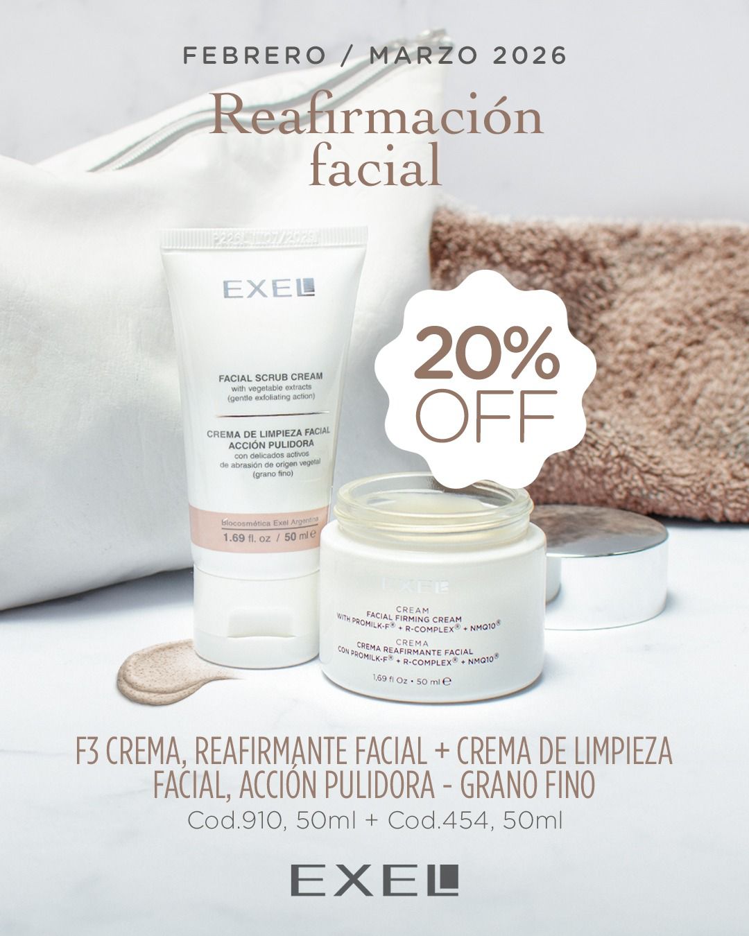 Llevando una Crema F3 Reafirmante facial m谩s una Crema de Lipieza facial Acci贸n Pulidora Gano Fino, te hacemos un 20%OFF 馃巵