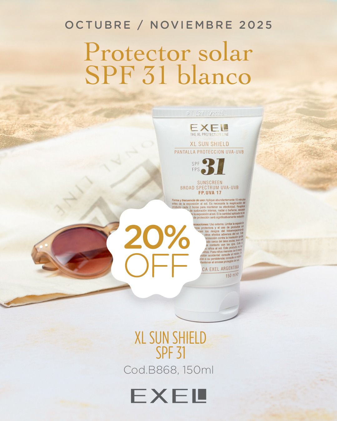 Llevando una Pantalla XL Sun Shield SPF 31 Blanco de 150ml, te hacemos un 20%OFF 馃巵