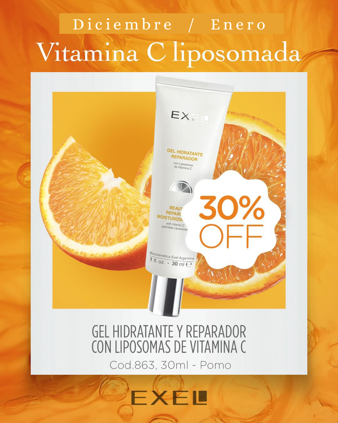 Llevando un Gel Hidratante y Reparador con Liposomas de Vitamina C en pomo, te hacemos un 30%OFF 馃巵